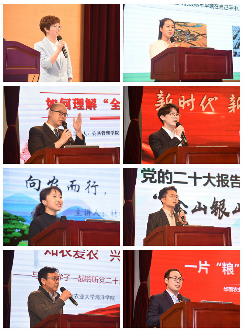 来自全校的20位辅导员,围绕党的二十大提出的一系列新的重要思想、重要观点、重大战略、重大举措,结合个人工作实际、学校“双一流”建设和所在学院学科特色,进行了精彩的微党课展示。比赛中,选手们深挖工作实践和现实生活中的鲜活素材,以小切口呈现大主题,用小故事折射大时代,自然大方的教态、精心制作的课件、富有时代感的设计和饱满高昂的授课热情,赢得与会评委与观众的阵阵掌声。