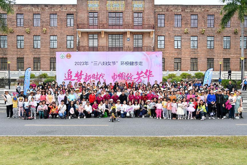 为庆祝第113个“三八妇女节”,营造健康和谐的节日氛围,展示我校女教职工蓬勃向上、积极进取的精神风貌,激发巾帼不让须眉的斗志和干事创业的活力。3月8日下午,我校开展了“追梦新时代 巾帼绽芳华”环校健步走活动。校党委常委、副校长、校工会主席钟强出席,全校300多名女教职工参加了此次活动。