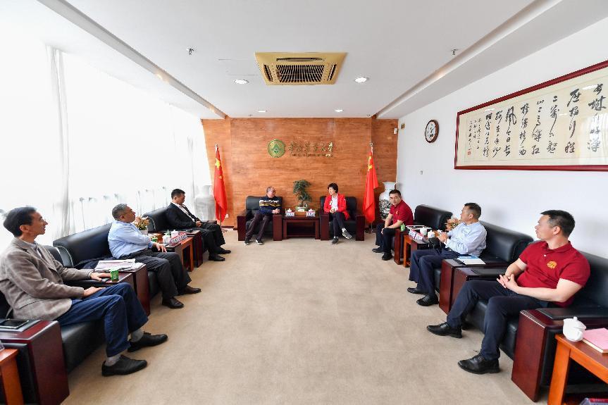 3月10日上午,我校深圳校友分会荣誉会长唐桂章、珠海校友分会执行会长崔国辉、佛山校友分会会长张伟海、东莞校友分会会长赵长伟回校交流,汇报分会工作。校长刘雅红接待了来访校友。