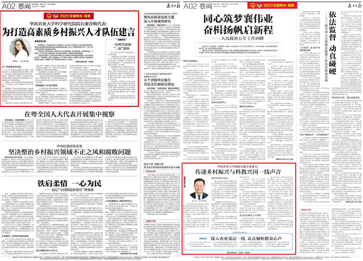 《南方日报》2月17日A02版 华南农业大学科学研究院院长谢青梅代表:为打造高素质乡村振兴人才队伍建言