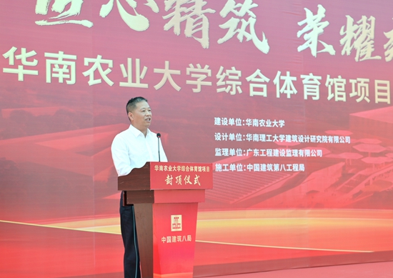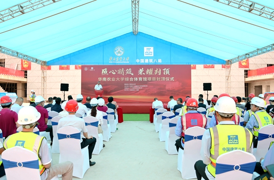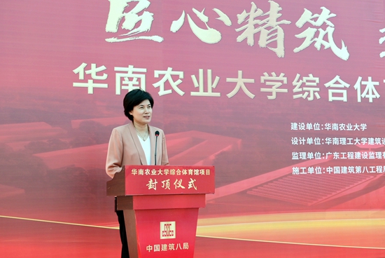 “综合体育馆寄托着几代华农人的夙愿,它的建设具有里程碑式的意义!”刘雅红代表学校感谢全体建设者们的辛苦付出,并指出,综合体育馆的建设将大大增加学校室内运动场地面积,增强师生在校学习生活的幸福感和获得感,提升学校社会影响力,“主体结构封顶后的建设工作仍然繁重,希望各单位通力配合、再接再厉,将华农综合体育馆打造成精品工程项目,把综合体育馆建成未来华农的新地标,展现百年华农新形象,进一步提高学校办学水平和人才培养质量,为广东高等教育事业的发展贡献华农力量!”