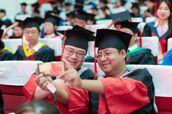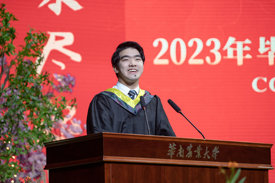 “时间总是催促着我们向人生的下一站出发,带不走的却是我们一生的华农情。我们是一辈子的华农人,要知农爱农、强农兴农,在希望的田野上建功立业!”研究生毕业代表、兽医学院2020级基础兽医学专业硕士研究生鲁兆祥表示,今后将铭记母校恩情、常怀感恩之心,牢记初心使命、全心服务“三农”,努力成为新时代奋勇前进的搏击者,以青春之名,赴时代之约。