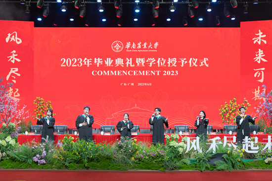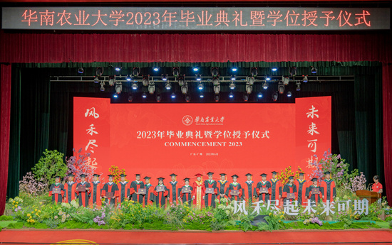 6月27日,华南农业大学2023年毕业典礼暨学位授予仪式在丁颖礼堂举行,并同步在学校官方视频号直播。繁花舞台、毕业短片、合唱表演、拨穗正冠、颁授荣誉、合影留念……今年,华农为全体毕业生举行了一场温馨感人的“繁花中的毕业典礼”,为毕业生们送上美好祝福。