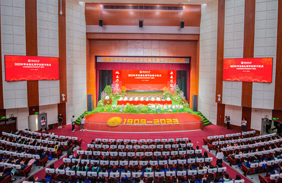 根据工作安排,2023届毕业生学位授予仪式从6月27日上午开始,一直持续到6月28日中午,共举行8个场次,由校长刘雅红和校学位评定委员会委员为六千余名毕业研究生和本科生代表授予学位并逐一拨穗。