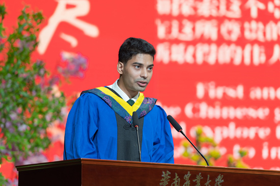 “能有机会沉浸在中国丰富的文化中、在华南农业大学获得宝贵知识,我们对此深感荣幸!”留学生毕业代表、来自印度的2018级机械电子工程专业硕士生沙克表示,在华农求学的美好经历将永远留在心中。未来,自己将努力讲好中国的故事、华农的故事,让更多国际友人了解中国、了解华农。