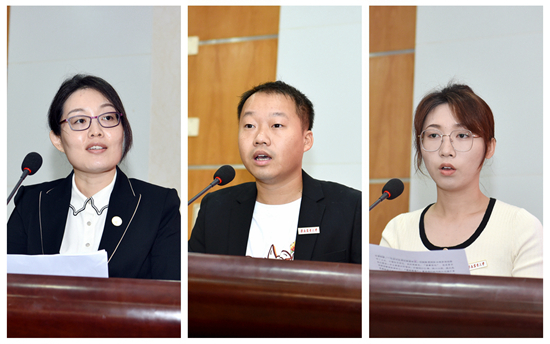 农学院专任教师林秋鹏、工程学院辅导员林冰冰作为新进教职工代表分别上台发言。林秋鹏表示,入职以来,自己深刻感受到了学校、学院对青年人才的高度关注,也对未来的教学、科研工作充满了信心与动力:“我们会做好精神传承,全力培养学生,攀登学术高峰,努力提升自我,成为一名品德、才行兼优的好教师,为学校‘双一流’建设贡献青春力量。”林冰冰则围绕“因事而化”“因时而进”“因势而新”三个方面阐述了对高校辅导员工作的理解,表示将以承接接续奋斗、载梦前行的使命,肩负着开源活水、立德树人的担当,以成为学生的“人生导师”和“知心朋友”为目标、以开展深入细致的学生日常思想政治教育和管理工作为途径,做一名优秀的辅导员。