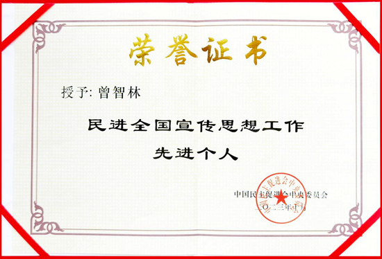 10月11日,民进全国宣传思想工作会议在京开幕。会上对民进全国宣传思想工作先进集体和先进个人进行表彰,我校民进基层委主委曾智林教授荣获“民进全国宣传思想工作先进个人”荣誉称号。