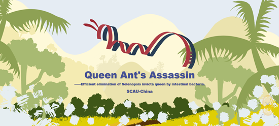 红火蚁(Solenopsis invicta)是世界上公认的最具侵害性的100种入侵物种之一,对入侵地农业、畜牧业、公共基础设施、生态群落和人类健康均能造成严重危害。因此,SCAU-China团队开发了一种新型肠道活菌药物,其基于两个正交的群体感应系统调控两种蛋白药物级联释放,最终通过蚁群反哺行为使药物富集到蚁后体内并将其灭杀,从而使蚁巢崩溃,达到有效防治红火蚁的目的。