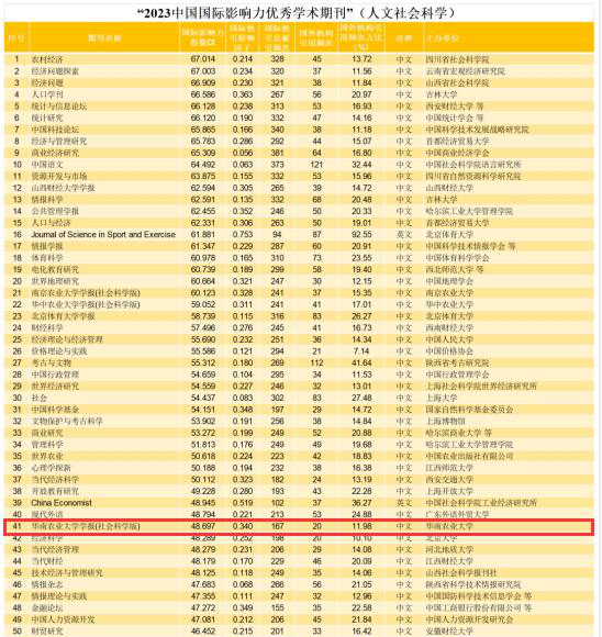 华南农业大学学报(社会科学版)首次入选中国国际影响力优秀学术期刊
