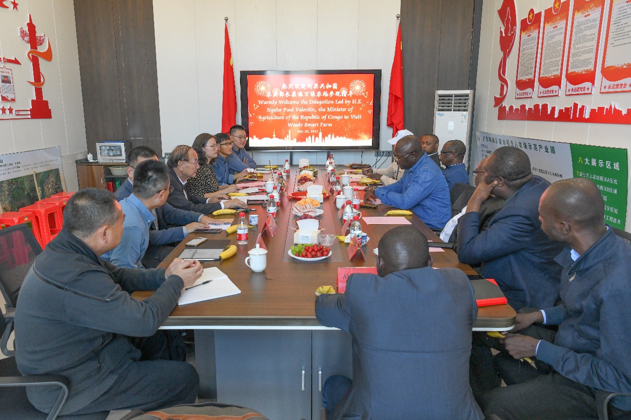 为促进中刚农业合作,11月20日,刚果共和国农业、畜牧和渔业部部长保罗·瓦朗坦·恩戈博希一行9人赴广东河源万绿智慧无人农场考察并座谈交流。中国工程院院士、华南农业大学教授罗锡文接待了恩戈博希一行。