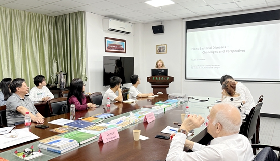 Giorgi Kvesitadze院士、Tinatin Sadunishvili院士分别围绕“格鲁吉亚生物资源”“格鲁吉亚国家科学院”以及“植物细菌性疾病的挑战与展望”作主题报告。与会双方一致同意,植物机理相关内容与中心开展的精准农业航空技术研究密切相关,未来将继续加强相互间的国际交流与合作。