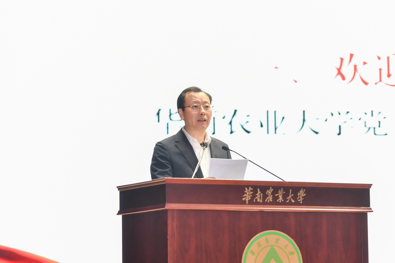 李凤亮在致辞中表示,此次培训会在华南农业大学召开,是对学校工作的肯定和激励。华南农业大学坚持以立德树人为根本,以强农兴农为己任,特别是进入“双一流”建设高校行列以来,立足国家和广东省重大发展战略需求,充分发挥多学科专业特色和优势,走出了一条多层次、多形式、多途径、政产学研深度融合的服务乡村振兴道路,取得了丰硕成果。学校将在“百千万工程”指挥部、省教育厅等有关部门的指导和带领下, 紧紧围绕确定的目标任务和工作要求,以全面助力乡村振兴和实现农业农村现代化为导向,统筹谋划,主动作为,积极与地市沟通交流,发展农业战略产业,培养知农爱农的行业领军人才,努力打造高校助力县域发展示范样板,与全体盟员单位携手为助力我省“百县千镇万村高质量发展工程”贡献力量。