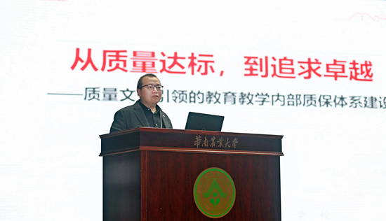 薛红卫作动员讲话。他指出,我校将于2024年迎来新一轮本科教育教学审核评估,这是对学校全面落实立德树人根本任务、巩固人才培养中心地位成效的全面“体检”,是学校深化教育教学改革、推进教学建设、强化教学管理的大好机遇,全校上下必须高度重视、全力以赴。他强调,做好迎评促建工作,一是要统一思想,提高站位,深刻认识新一轮审核评估的重要意义。开展新一轮审核评估,是全面贯彻落实党的教育方针、确保实现“双一流”建设目标、进一步提高人才培养质量的需要,事关学校未来发展。要切实增强评估促建的责任感和紧迫感,充分展现出华农在“双一流”建设中的良好风貌,不断提高学校的影响力和美誉度,为学校发展创造更好的外部条件。二是要吃透政策,抓住重点,精准把握新一轮审核评估工作的内涵要求。要全面掌握评估的指标体系,准确领会此次评估的突出特点,紧扣本科教育教学改革主线,坚持以评促建、以评促改、以评促管、以评促强,以迎评促建为抓手,扎实推进学校教育教学改革工作,从而推动学校内涵发展、特色发展、创新发展。三是要强化责任,狠抓落实,保质保量完成新一轮审核评估各项工作任务。要落实落细工作责任,领导小组和专项工作组要各司其职,严格执行一把手负责制,真正做到层层抓落实、人人扛责任。要加强工作协同协作,建立上下贯通、左右协同的联动机制,广泛动员师生参与。要抓好工作的统筹结合,尤其要将审核评估与学校的“双一流”建设工作有机结合、一并推进。