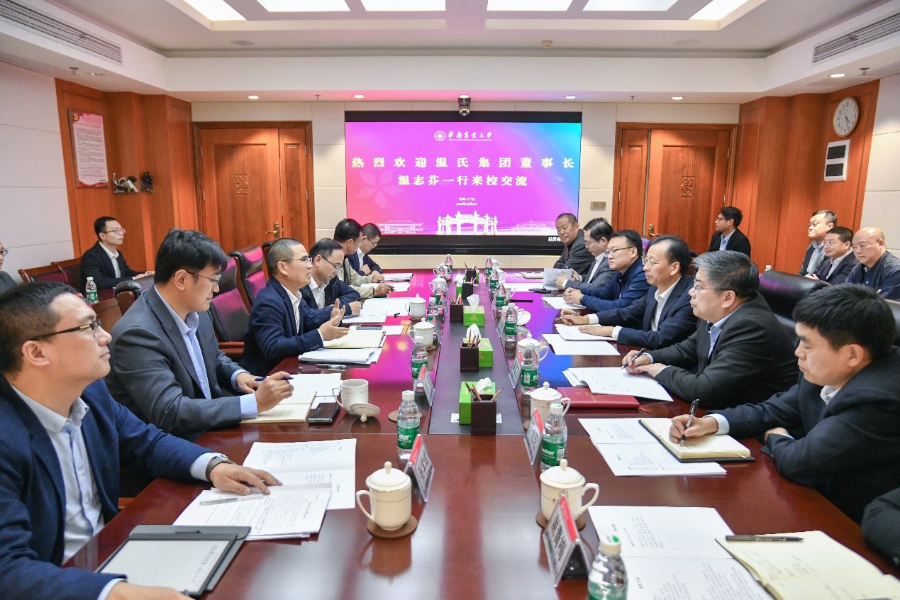 为进一步深化“华农-温氏”全面合作,12月4日下午,温氏集团董事长温志芬,总裁黎少松,董事、副总裁赵亮,副总裁、技术总监张祥斌等一行来校交流,学校党委书记李凤亮、校长薛红卫在行政楼7楼中会议室接待了来宾并座谈。