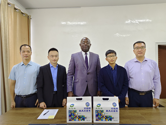 近日,我校国家植物航天育种工程技术研究中心郭涛教授、资源环境学院王瑞龙研究员应邀到刚果(布)农业部进行友好交流访问。郭涛一行拜访了刚果(布)农业部长恩戈博·保罗·瓦朗坦(Ngobo Paul Valentin)先生,并考察了位于高原省(Plateaux)的农业生产基地。