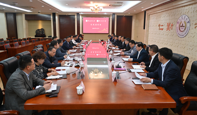 4月2日,在南京,南京农业大学党委书记王春春、校长陈发棣,南京林业大学党委书记赵茂程、副校长尹佟明热情接待了我校调研组一行,并分别介绍了学校基本情况和近期发展成就,同时围绕学校党建、学校治理体系、“双一流”学科建设、高层次人才队伍建设、一流人才培养、科技创新与重点平台建设等方面进行深入的交流与讨论。李凤亮在调研中对南京农业大学、南京林业大学的热情接待和帮助支持表示衷心感谢,他指出,三校的办学历史、发展背景与发展路径相似,师生交流频繁,有着非常亲密的兄弟情谊。同时表示在探索特色发展实现路径中,我校将坚持走内涵式发展之路、科学治理之路、改革创新之路、开放合作办学之路,希望通过本次调研,能够借鉴兄弟院校宝贵经验,进一步加强学科建设、科研合作、人才培养以及社会服务等方面交流协作,实现互惠共赢。薛红卫介绍了我校基本情况与近期事业发展情况,对兄弟院校高质量发展取得的成绩表示赞赏,希望在已有合作的基础上,保持紧密关系,持续推动更多领域的交流及合作。会前,调研组一行先后参观了南京农业大学肉品质量控制与新资源创制全国重点实验室、作物遗传与种质创新利用全国重点实验室和校史馆以及南京林业大学校史馆。