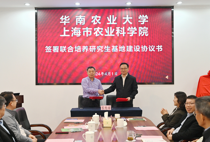 4月1日下午,在上海市农业生物基因中心,上海市农业科学院党委书记、院长蔡友铭,副院长史明热情接待了我校调研组一行并进行座谈。座谈会上,上海市农业生物基因中心首席科学家罗利军介绍了节水抗旱稻绿色产业研究院相关工作,并举行我校与上海市农业科学院研究生联培基地签约、揭牌仪式。蔡友铭对我校共建研究生联培基地,创新人才培养的举措表示感谢与赞赏,希望双方充分发挥各自优势、加强协作,共同为服务国家重大战略做出应有贡献。李凤亮用 “感恩”“学习”“合作”三个关键词表达了此次来访目的,希望以此为契机,进一步探索科教融合创新型人才培养模式,并对双方在加深彼此信任、相互成就、共谋大事等方面表示期待。薛红卫对上海市农业科学院长期以来的支持表示感谢,并对推动节水抗旱稻绿色产业研究院建设充满信心和未来合作充满期待。双方就学科建设、师资队伍建设、人才培养、科研合作等方面进行了交流。会前,调研组一行还参观了上海市农业科学院院史馆、林木果树研究所、食用菌研究所、农产品质量标准与检测技术研究所和科普馆。
