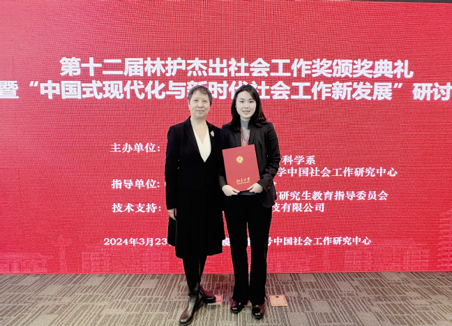 近日,北京大学-香港理工大学(中国社会工作研究中心)第十二届林护杰出社会工作奖颁奖典礼在北京大学举行。经评审委员会投票,我校公共管理学院2020级本科生张艺溶荣获第十二届林护杰出社会工作学生奖。此奖项全国仅五名,张艺溶同学为其中之一。