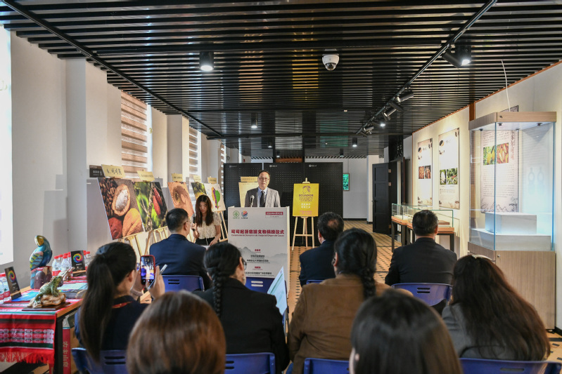 厄瓜多尔驻广州总领事Edwin Martinez表达了对主办单位的感谢,并详细介绍了厄瓜多尔可可的种植史、“帕兰达窑罐”的历史和文化价值以及其在厄瓜多尔历史和文化遗产中的重要地位。
