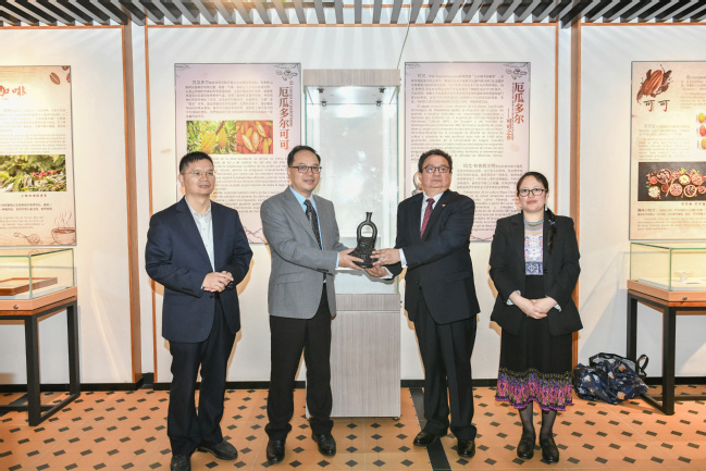 此次捐赠仪式不仅是对我校博物馆藏品的丰富,更是中厄两国文化交流与合作的一次重要体现。仇荣亮代表学校接受了这份珍贵的文物捐赠,并为Edwin Martinez总领事颁发捐赠证书。结合此次捐赠仪式,华南农业博物馆举办了为期一个月的茶叶、可可、咖啡“世界三大饮料”展览,不仅丰富了此次文化交流活动的内容,同时对公众了解、学习、保护和传承人类共同文化遗产具有重要意义。