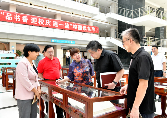 就如何进一步做好图书馆建设,薛红卫提出五点要求:一是要加强人才队伍建设,优化人才评估体系和人才队伍结构,提高专业人才比例,提升信息服务质量;二是要加强跨学科文化活动建设,帮助学生开拓学术视野,助力复合型人才培养;三是要科学规划发展,更好发挥图书馆各项职能;四是要提高现有空间利用率,加强数字资源库和智慧设备建设;五是要整理挖掘校本资源,做好校史文化传承,营造爱校荣校的良好氛围。