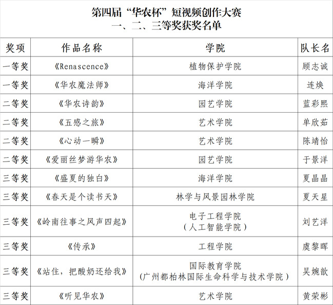 第四届“华农杯”短视频创作大赛结果出炉