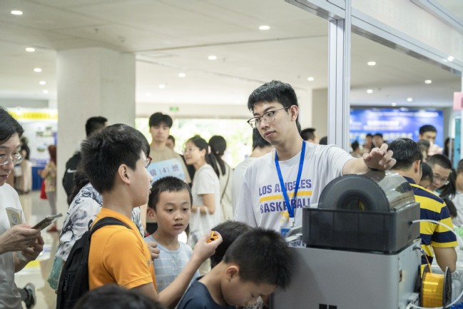 在这里,人们既可以直观感受广州地区科技创新事业发展迄今的重要成就,体验脑机交互设备、进行天文观测、参与义检义诊等,一批“高精尖”科技触手可得;也可以观察各类植物、昆虫等生物标本,或是进行简单易懂的科学小游戏,了解生活中的科学知识。科普集市专题展则陈列科技产品、科普文创,展销网红校园文创产品和具有代表性的科技转化产品,并开展“以书换书,创作有礼”活动,展现产业发展的创新活力。