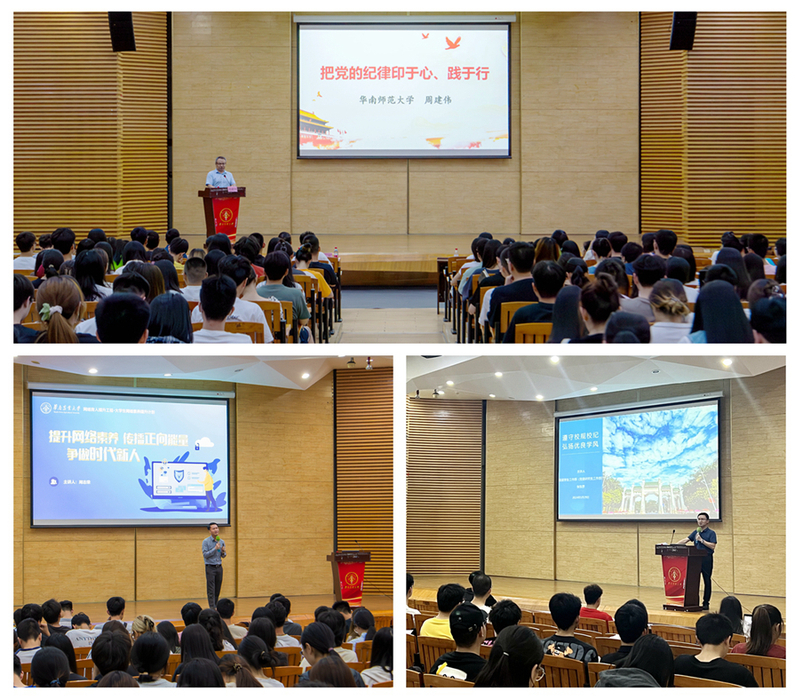 培训班围绕党纪学习教育、网络素养提升、校纪校规教育等专题内容分三场进行。首场专题培训邀请了华南师范大学马克思主义学院周建伟教授以《把党的纪律印于心、践于行》为题为培训班学员授课,他围绕政治、组织、廉洁、群众、工作和生活等党的六大纪律,结合学生学习生活实际,以鲜活详实的案例和数据详细阐释了党的纪律的主要内容。在随后的两场专题培训中,党委学生工作部(党委研究生工作部)有关科室同志以《提升网络素养,传播正向能力,争做时代新人》和《遵守校规校纪,弘扬优良学风》为题进行授课。
