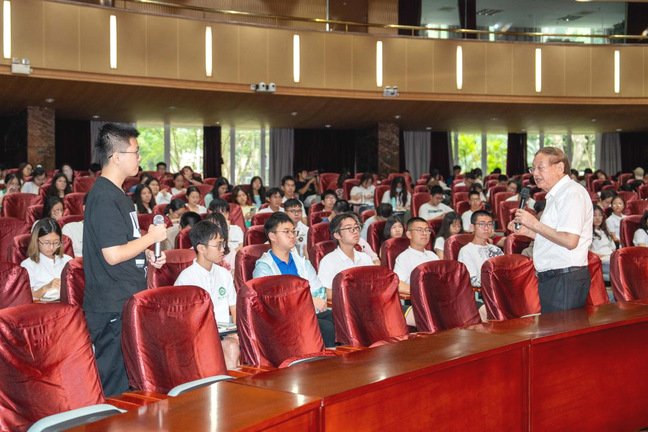 问答环节,现场学生积极踊跃提问,罗锡文院士一一耐心解答,互动氛围热烈。