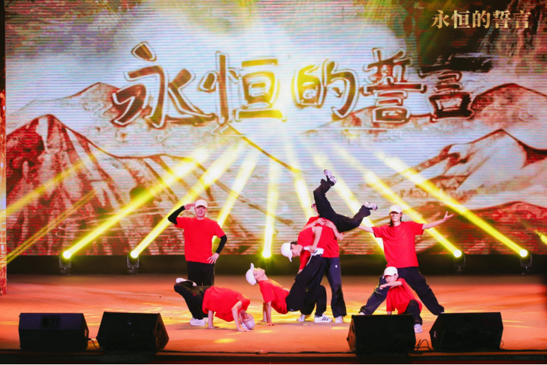 其中,我校创作的诗歌《生命的色彩——致敬卢永根院士》编排成情景朗诵表演以饱含深情的诵读,讲述我校老校长、“全国优秀共产党员”卢永根“一心向党、一生爱国、一身正气、一世恭俭”的先进事迹和崇高风尚,在场观众无不为之动容、深受鼓舞;我校艺术学院表演的街舞《闪耀时刻》引发热烈掌声。