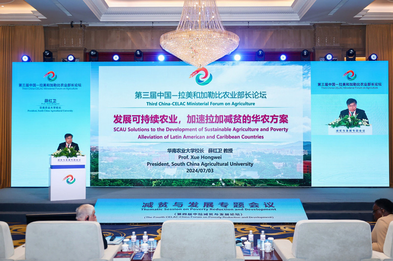 7月3日,由农业农村部主办的第三届中国—拉美和加勒比农业部长论坛暨第四届中拉减贫与发展论坛在山东省潍坊市举行。校长薛红卫受邀出席,并发表了题为“发展可持续农业,加速拉加减贫的华农方案”的主旨演讲报告,为助力拉美和加勒比国家减贫分享了华农经验和方案。