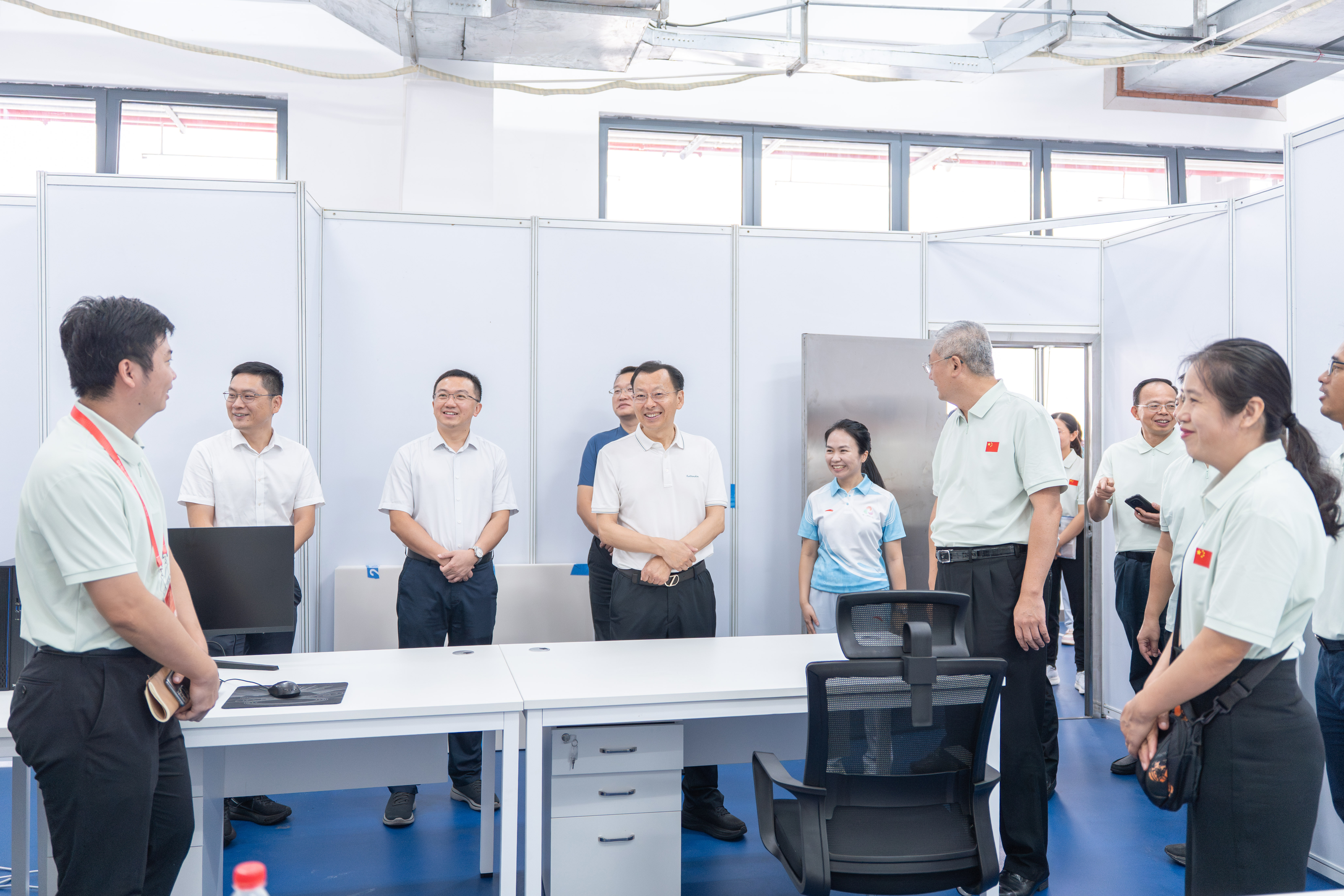 “比赛开幕在即,同志们都辛苦了!”在竞赛委员会办公室和比赛场地,李凤亮慰问工作人员及竞赛志愿者,详细了解岗位职责与工作细节;志愿者之家的工作间内,华南农业大学“小海豚”思政工作坊正在开展活动,志愿者们一起玩游戏、学技能,分享志愿心得和感悟,李凤亮查看了志愿者之家的设施与环境,了解志愿者的日常工作和学习生活情况;排练场地上,担任引导员、标兵、开幕式演职人员的华农学子正在老师的指导下一遍遍打磨每个动作细节,李凤亮仔细了解训练安排,并对同学们的辛勤努力和专业素养给予充分肯定。