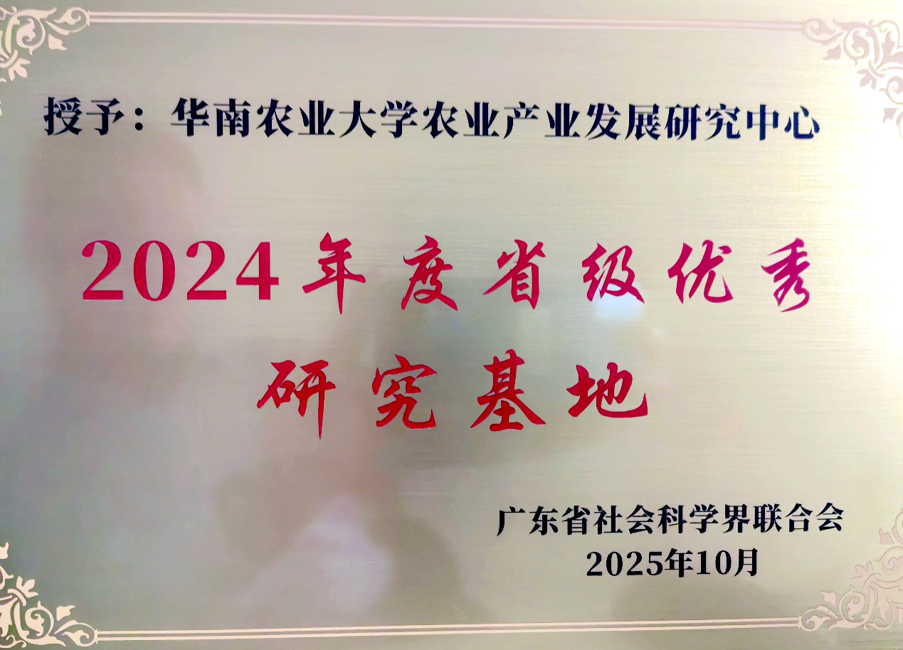 作为国家农业企业和农业产业的重要研究基地,华南农业大学农业产业发展研究中心近年来在农业经济与发展领域取得了一系列研究成果。2024年,中心成员所撰写决策咨询报告获得国务院、省政府各层级领导批示7项;中心在《Sustainable Cities and Society》《Decision Support Systems》《Land Use Policy》《管理世界》《农村经济》《南开管理评论》《学术研究》等领域权威期刊发表学术论文数量累计达36篇;新增国家社会科学基金、教育部人文社科等课题11项,获省哲学社科优秀成果奖3项。罗明忠教授因其提交的高质量决策咨询报告获得省级领导肯定与批示,并产生积极社会反响,获评“2025年度《南方智库专报》优秀作者”。