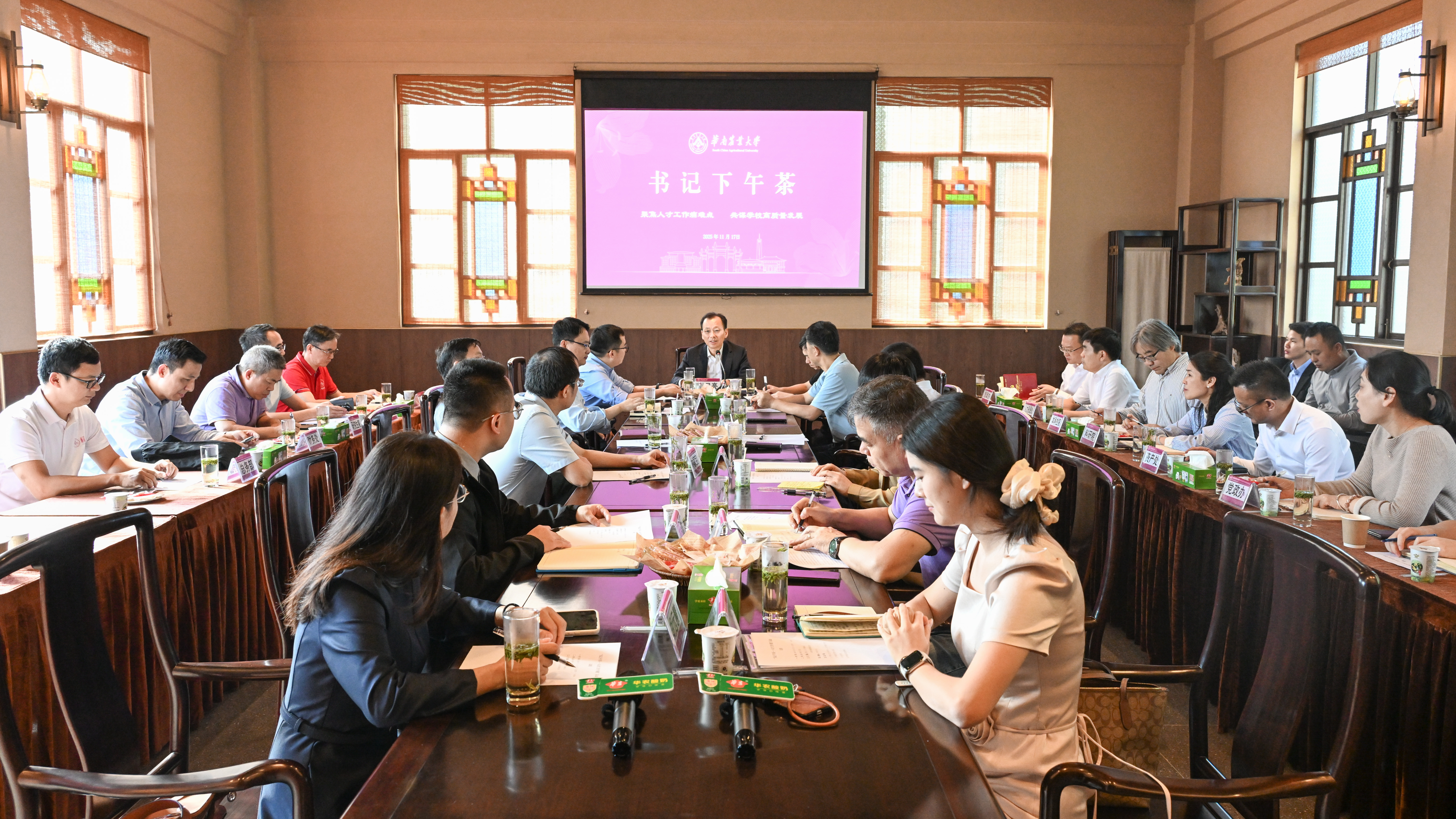 为推动学校人才工作提质增效,理顺“引、育、用、留”全链条机制,11月17日,校党委书记李凤亮主持召开“书记下午茶”——人才工作专场活动,与各学院人才工作负责人、一线人才代表茶话交流,听取与会代表在政策配套、平台支撑、生活保障、评价体系等方面的意见建议,凝聚共识,破解难题。