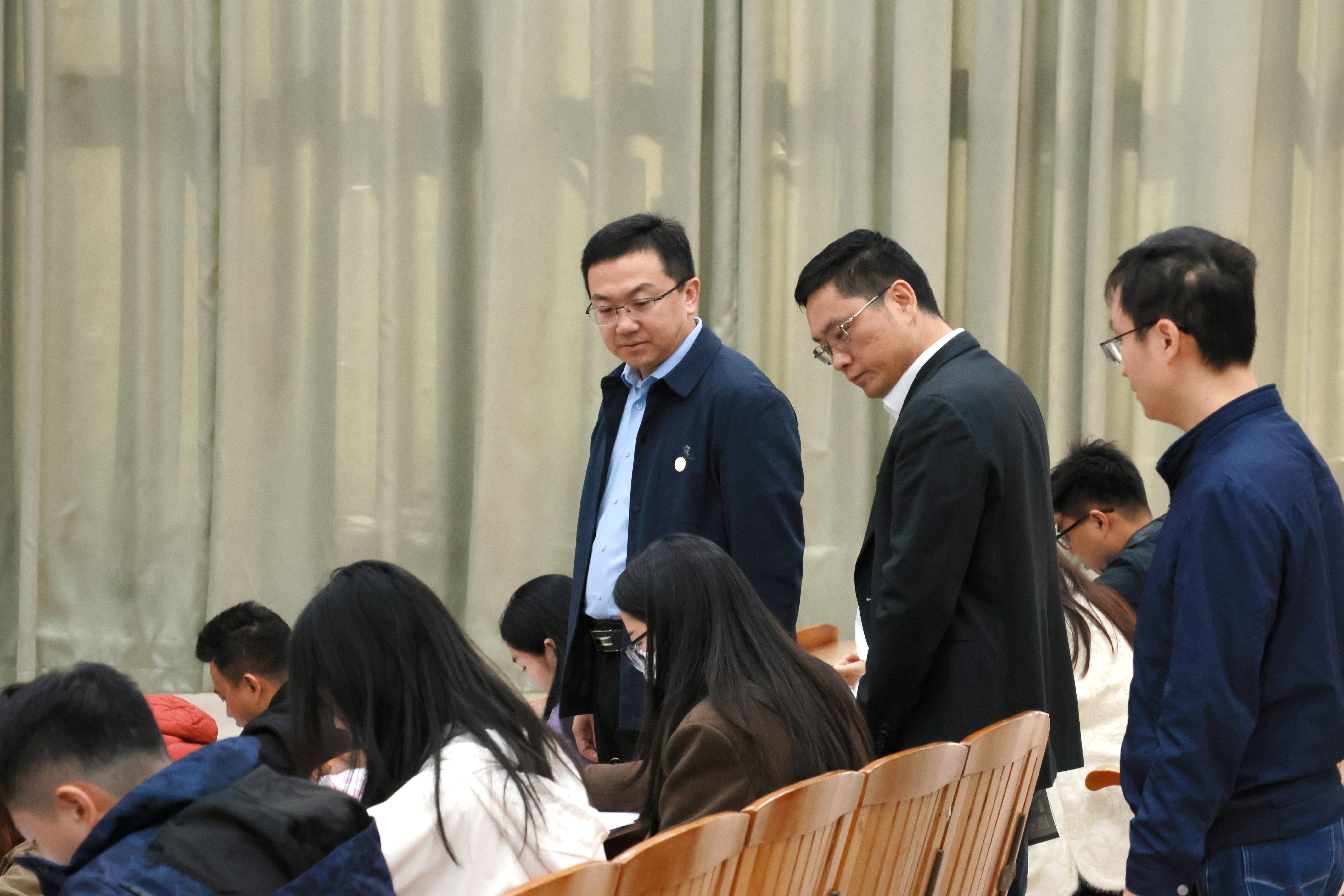 测试期间,陈磊详细了解考务组织、考试内容及辅导员参赛情况,并对赛事活动和业务评价提出明确要求,要把相关工作与辅导员育人场景和育人实效相结合,以赛促练,以评促建。