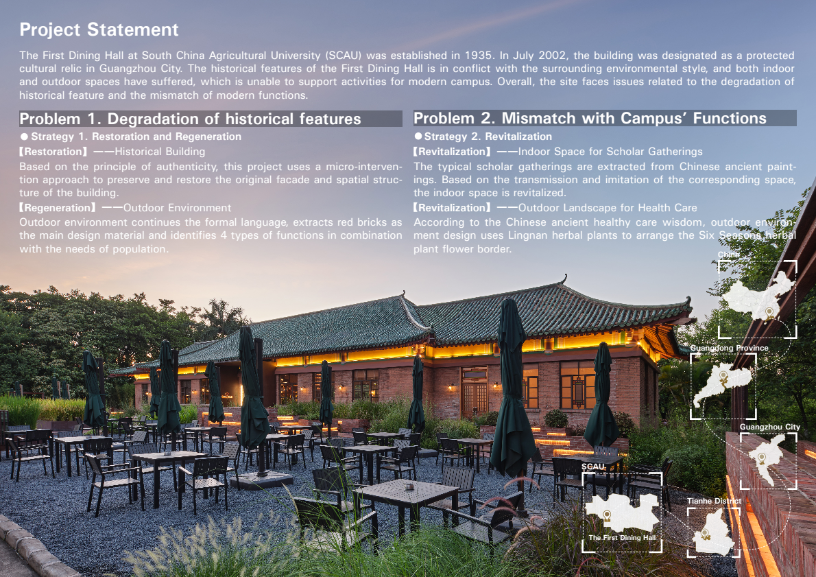近日,2025年度国际风景园林师联合会IFLA APR LA 2025大奖(IFLA APR LA Awards 2025)获奖名单公布,林学与风景园林学院高伟教授团队作品《华南农业大学乙组膳堂(华农酸奶文化馆)保护修缮及活化再生设计》获“建成项目:文化与城市景观类卓越奖”。