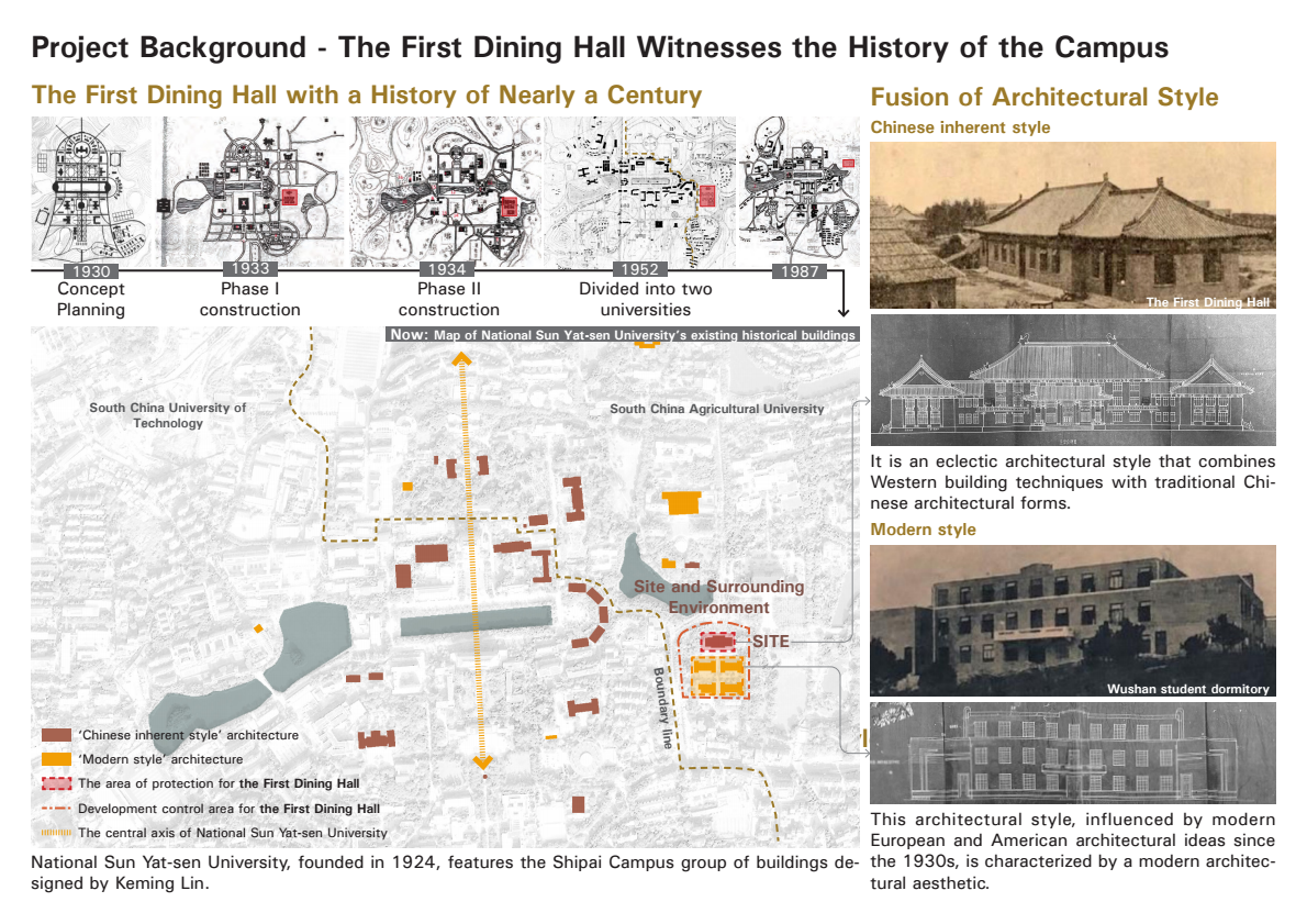 据介绍,华农酸奶文化馆前身为中山大学乙组膳堂,始建于1935年,由著名华侨商人胡文虎、胡文豹兄弟捐建,2002年7月被列为广州市第六批文物保护单位。2023年2月,历经两年改造升级,华农酸奶文化馆正式开放营业。项目由广州华农大食品科技有限公司委托、广东华农大城市规划设计研究院有限公司施工,涵盖整体风貌协调、户外环境再生、建筑本体修缮以及室内空间活化四部分设计内容,以微介入的方式对建筑本体进行修缮,在保护了文物建筑遗产风貌的基础上,以风景园林手法主导整体历史环境更新,激活紧邻学生社区的历史空间,营造服务师生的校园文化生活场所,传承华农文脉,弘扬校园文化,使华农酸奶文化馆成为广受师生欢迎的校园新地标。