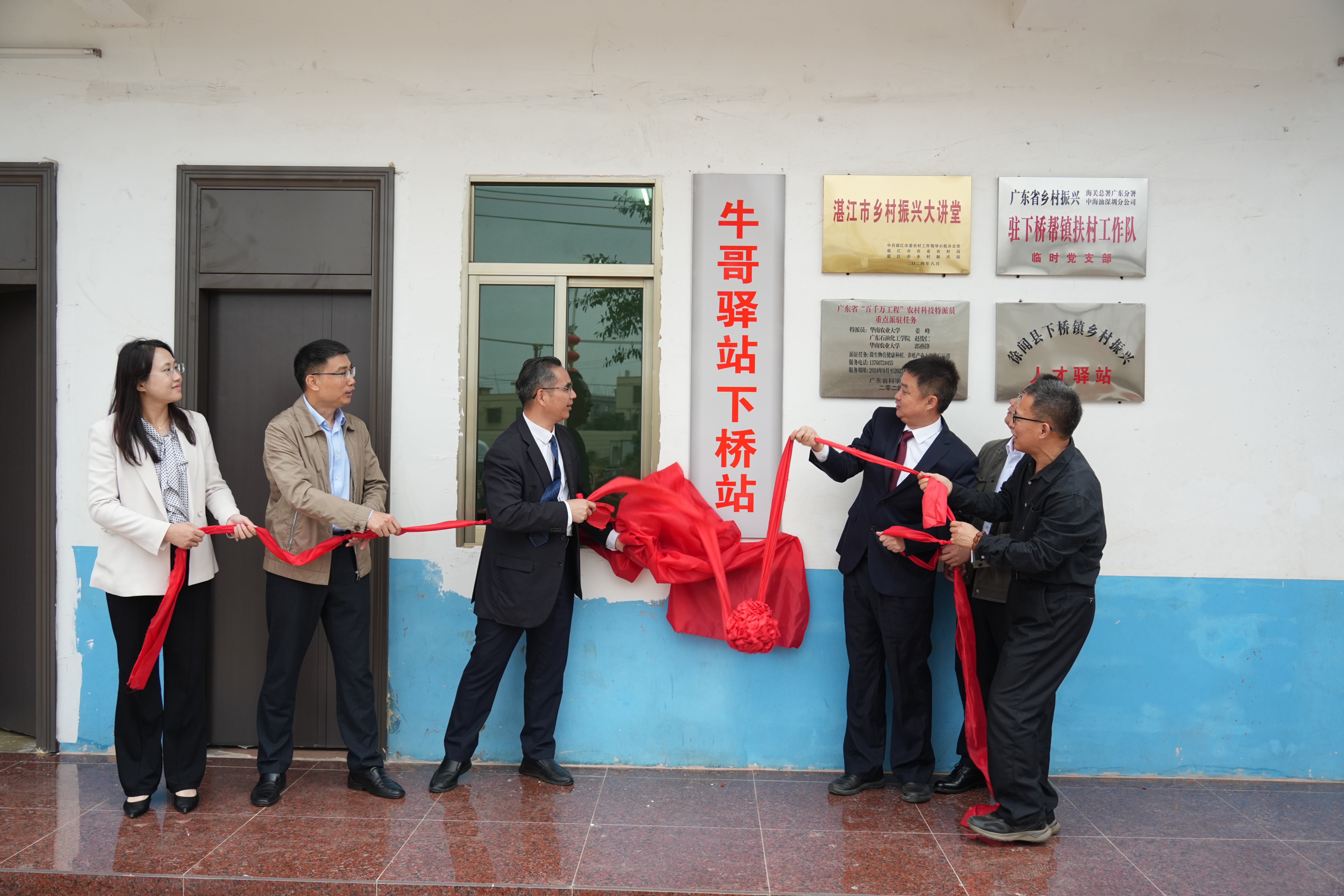 会议举行了华农材料与化学工程学院与徐闻县战略合作框架协议签署仪式。陈乐天、吴国雄等为“湛江市乡村振兴大讲堂”入驻“牛哥驿站下桥站”揭牌。