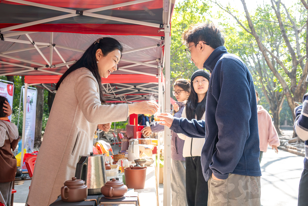 12月27日,华南农业大学昭阳湖畔茶香弥漫,一批优秀茶企沿湖设展,现场展示茶艺、奉上茶点、推介特色茶叶,吸引众多师生与市民驻足品鉴、交流询问。科技楼报告厅内,一场别开生面的茶艺表演《五色禅心》拉开紫荆科技创新交叉论坛暨茶产业高质量发展论坛帷幕。论坛上,校内外茶学专家、地方政府代表、茶企代表与行业校友齐聚一堂,就茶学专业建设、人才培养、产业发展等问题开展深度交流。