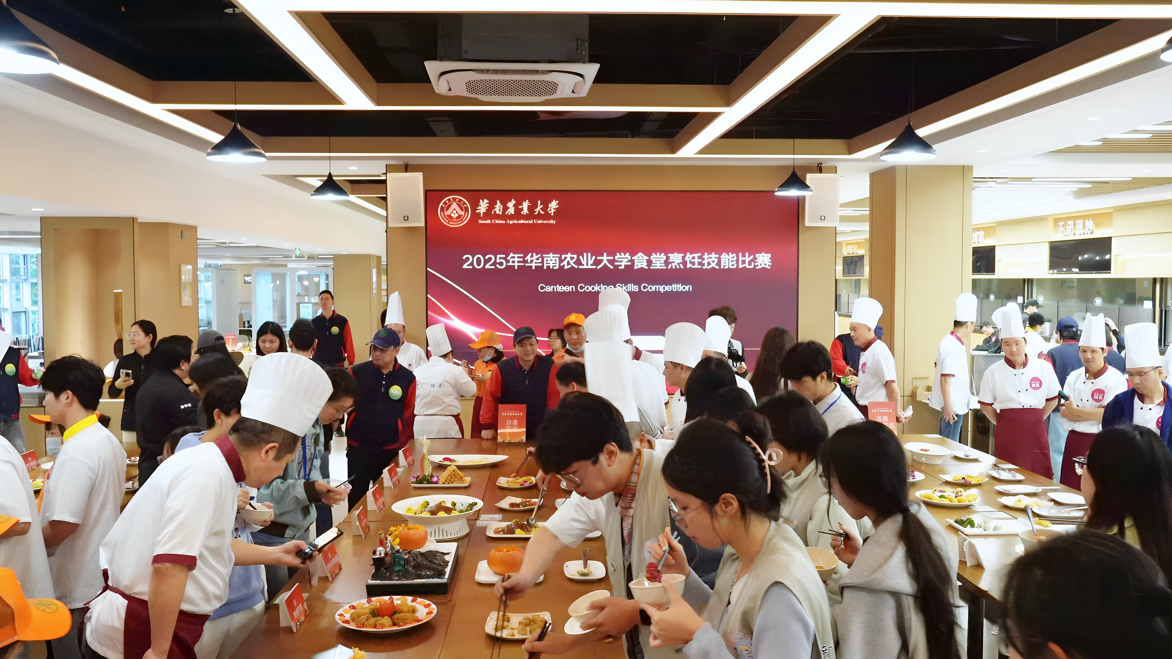 “菜品‘芭蕉火焰黄金菌’不仅创意十足,滋味也令人惊喜。”华南农业大学膳食管理委员会的学生代表欣喜讲道,现场气氛之热烈、菜品之丰富都超出预期,希望未来能举办更多类似活动,让食堂的窗口常常飘出同学们期待的味道。