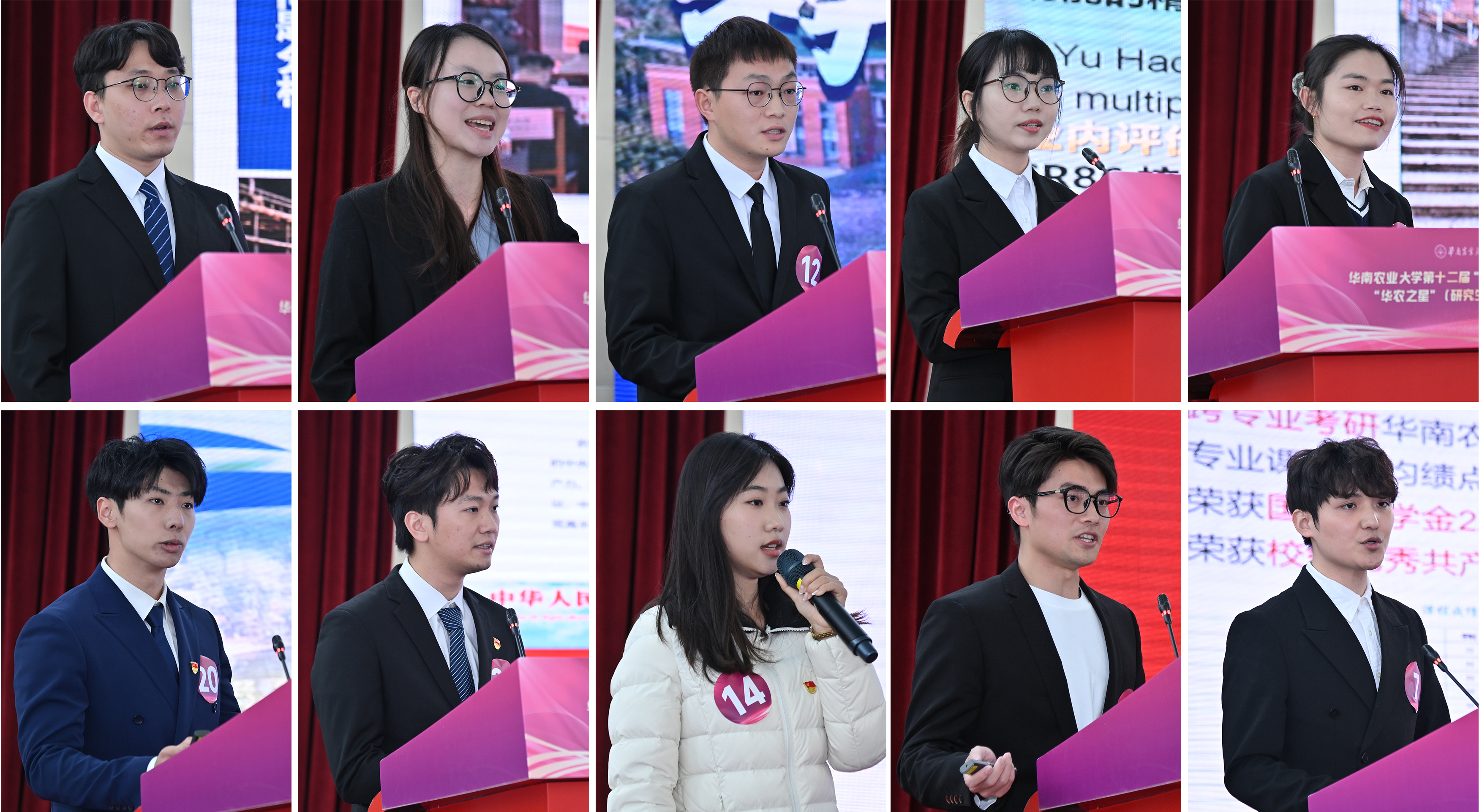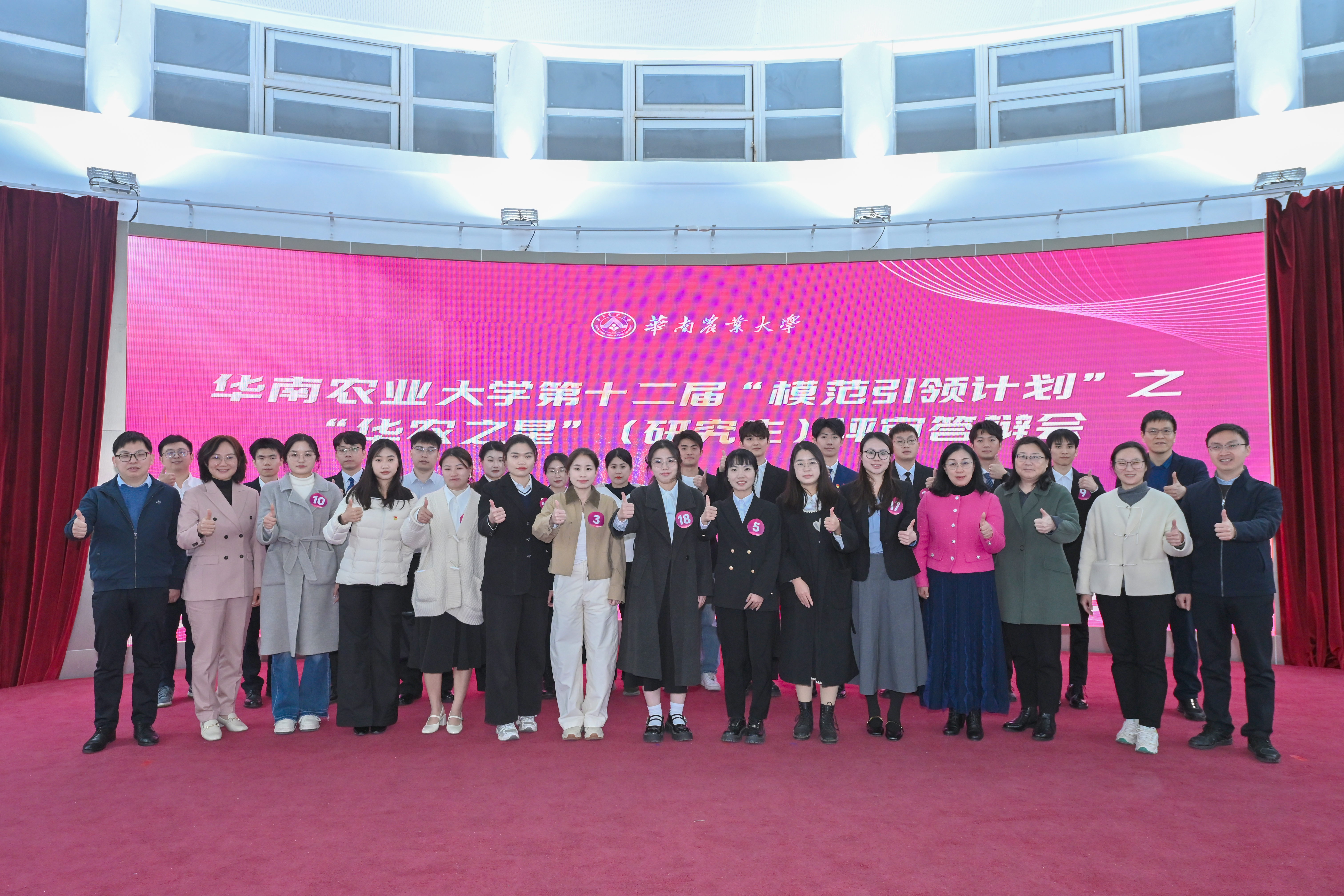 近日,第十二届“模范引领计划”之“华农之星”(研究生)评审答辩会在红满堂报告厅举行。本次活动聚焦“厚植三农情怀,争当强国一代”主题,由网络投票和现场评审答辩两部分组成,并新增研究生导师现场及线上推荐环节。来自全校各学院的22位研究生候选人先后登场,展现了新时代华农学子践行强农使命、勇担时代使命的青春风采。校党委副书记丁红星出席活动。