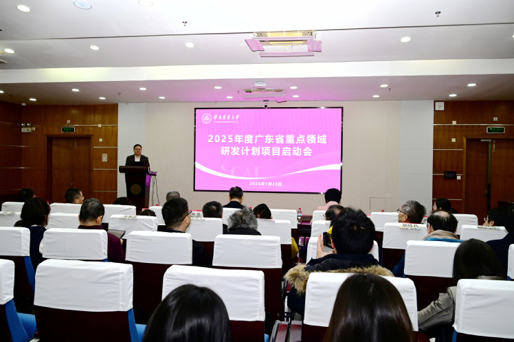 1月23日,华农在行政楼3楼报告厅集中召开2025年度广东省重点领域研发计划项目启动会,全面部署华农承担的10个项目的研究任务与实施管理工作。此次启动的项目涵盖“现代种业(生物育种技术)”“精准农业及生态绿色技术(荔枝品质维持)”“食品营养健康与食品安全”三个重大专项。广东省技术经济研究发展中心主任林雄、华农副校长陈乐天出席会议并讲话。