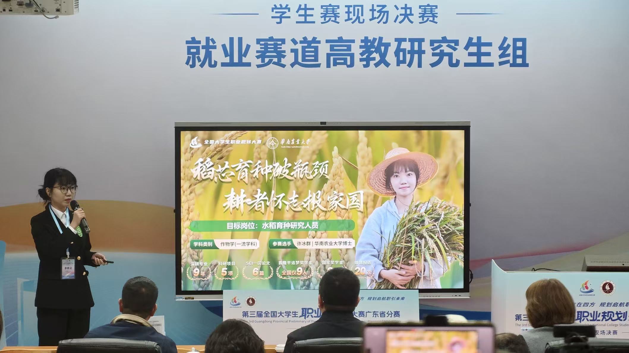 学校艺术学院本科生何佳伟以“执行编导”为职业目标,深耕文旅演艺行业,开展超50场演出实践项目,将不同地域的文化故事,转译为观众能读懂的舞台画面,斩获就业赛道本科生组金奖。生命科学学院博士生许冰群紧扣水稻育种研究人员核心能力要求,通过基因编辑技术成功改良野生型海水稻,攻克技术“卡脖子”难题,实现水稻精准设计育种,斩获就业赛道高教研究生组银奖。数学与信息学院、软件学院教师刘雨丝代表学校汇报职业规划课程建设情况,该课程根据专业特色创新教学设计,开展专业化、实践化、个性化教学,着力培养具备规划意识与就业技能,具有知农爱农情怀,强农兴农本领的卓越复合型人才。最终,刘雨丝斩获课程教学赛道银奖,并顺利通过国赛网评,成为全省2位晋级国赛现场赛的本科高校选手之一。
