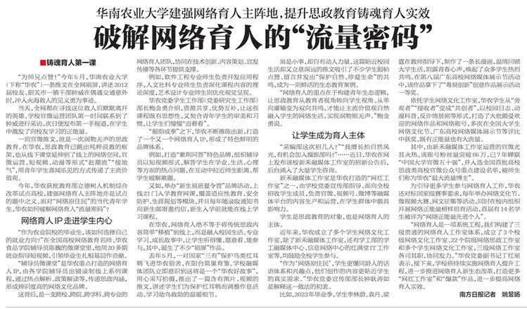 南方日报专题报道华农网络育人工作成效