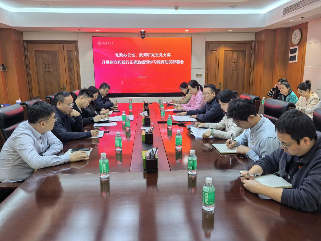 3月11日上午,党政办公室、政策研究室党支部在行政楼七楼中会议室召开树立和践行正确政绩观学习教育启动部署会,全面启动支部学习教育工作,全体党员干部参会。会议由党支部书记吴斌同志主持。