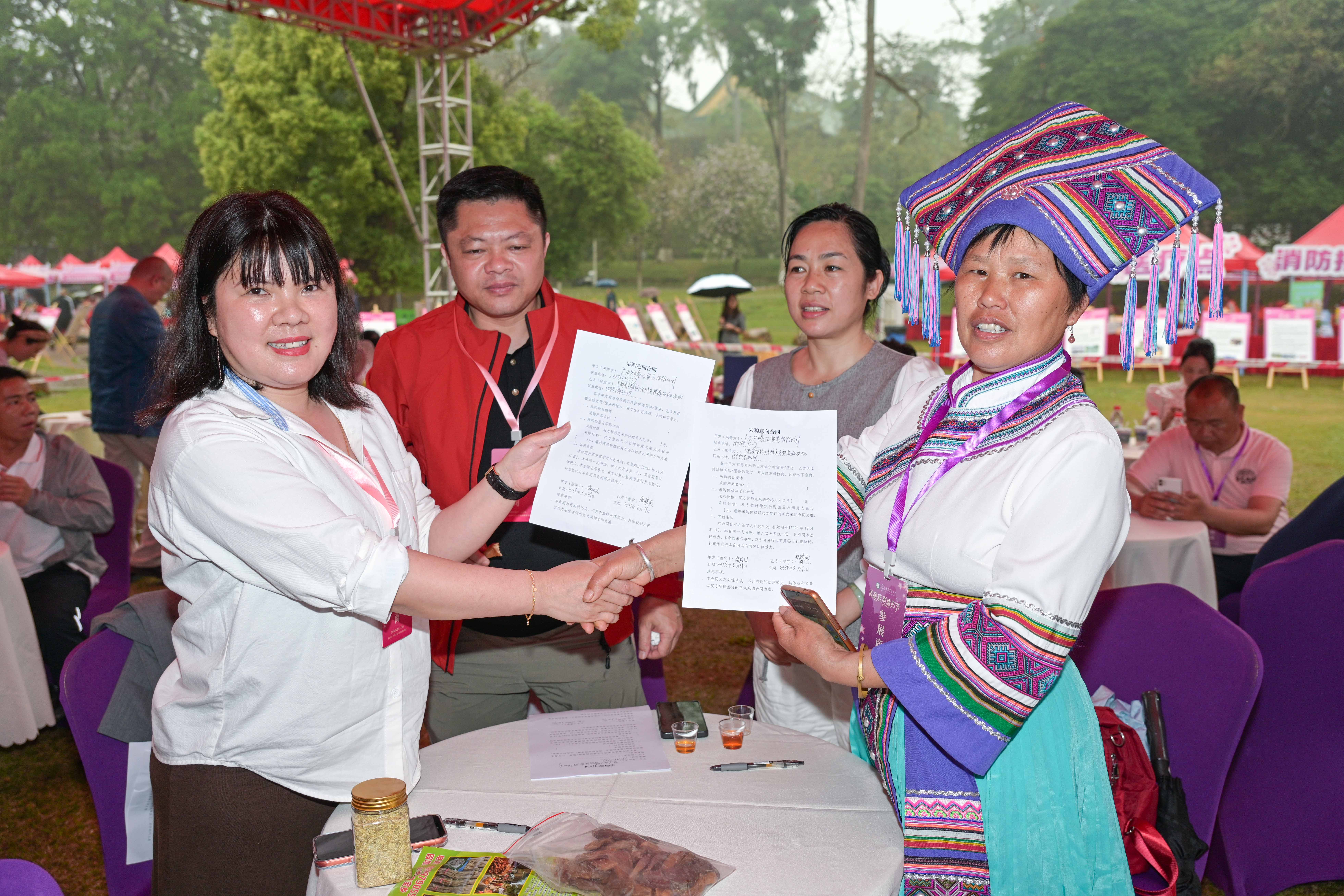 此外,与普通集市不同,本次活动深度整合产业链资源,聚集了育种、养殖、加工、产销、物流、金融、科技服务等领域的企业与机构。多家采购商现场选品,与学员精准洽谈并达成意向签约,打通优质农货产销链路。中国建设银行广东省分行等金融机构设立专属服务区,为“头雁”量身定制涉农贷款、供应链金融等解决方案。专业导师团同步提供技术咨询与项目指导,开展合作意向签订、基地考察预约等工作,以高校智力资源助力乡村产业提质升级。多位“头雁”学员现场直播带货,讲述产品背后的乡土故事,助力乡村特色产品走向更广阔平台。