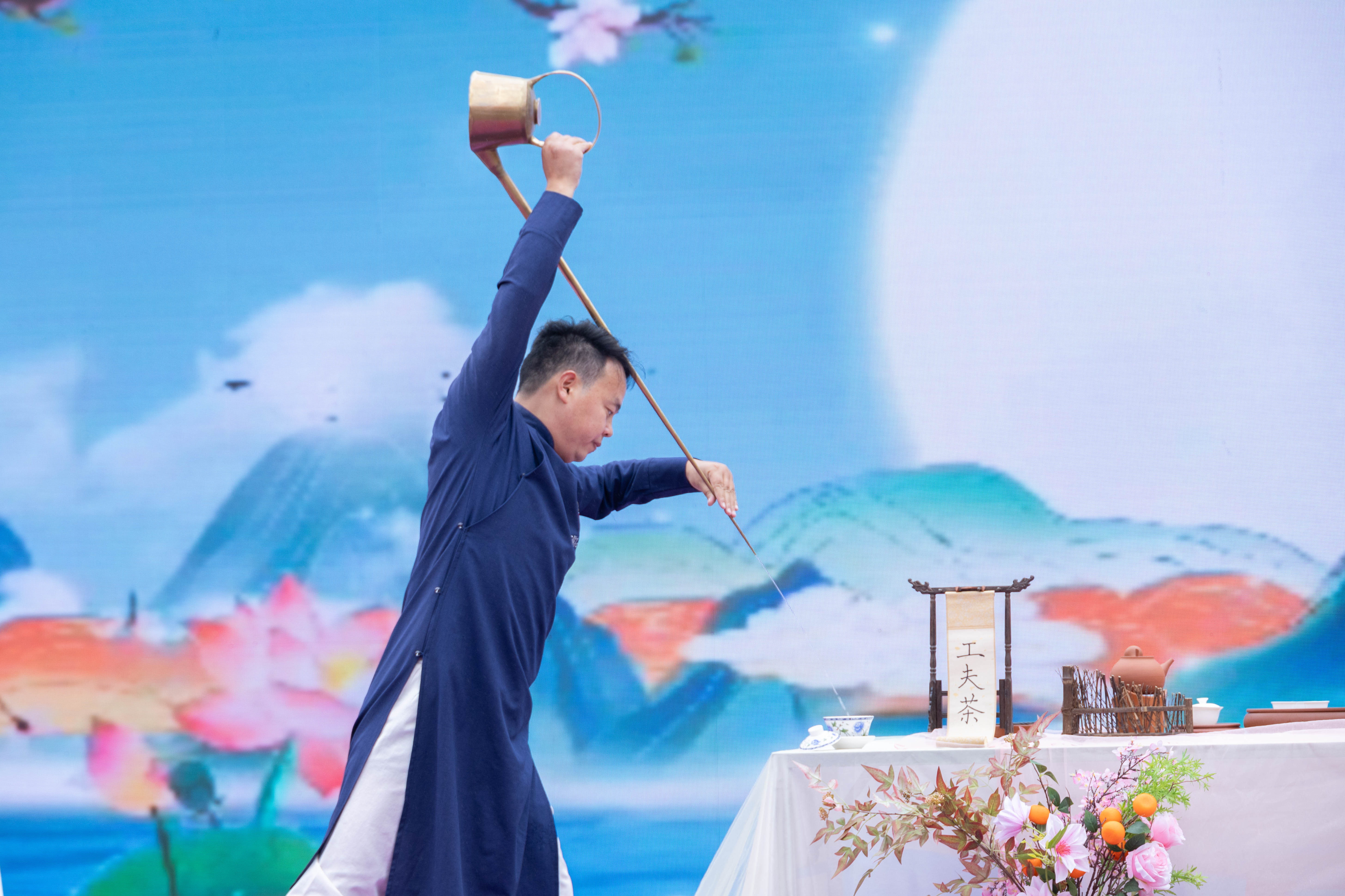 开幕式上,五省(自治区、直辖市)“头雁”轮番登场,通过趣味小品、山歌对唱、竹竿舞蹈、茶艺表演等精彩节目,生动展示了石斛花茶、彭水黄精茶、开州豆干、恭城油茶、都匀刺梨冻、客家擂茶等特色茶品与茶点。安徽学员的小品《100亿》演绎产业振兴故事,重庆学员的山歌《娇阿依》唱出巴渝风情,广西学员的竹竿舞展现壮乡热情,贵州学员的独唱《我在贵州等你》抒发乡土情怀,广东学员的茶艺表演尽显广府茶韵。