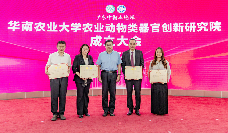 华农校长薛红卫介绍,研究院依托华农动物科学学院畜牧学科,整合生命科学、兽医、海洋、材料与化工等学院以及有关科研院所、高新企业的研究力量,是华农积极响应国家战略部署、培育农业新质生产力、填补华南地区相关领域研究空白的破局之役,也是面向科学前沿、前瞻布局未来学科发展的重要举措。学校将紧扣农业强国建设需求,聚焦类器官技术前沿与产业痛点,开展原创性、引领性攻关,坚持学科交叉融合,加强与国内外科研机构、龙头企业深度合作,汇聚各方资源构建“政产学研用”协同创新格局,推动科技成果加速转化,力争在农业动物类器官技术领域取得标志性成果,为助力广东从养殖大省迈向强省和我国畜牧产业转型升级提供核心技术支撑。