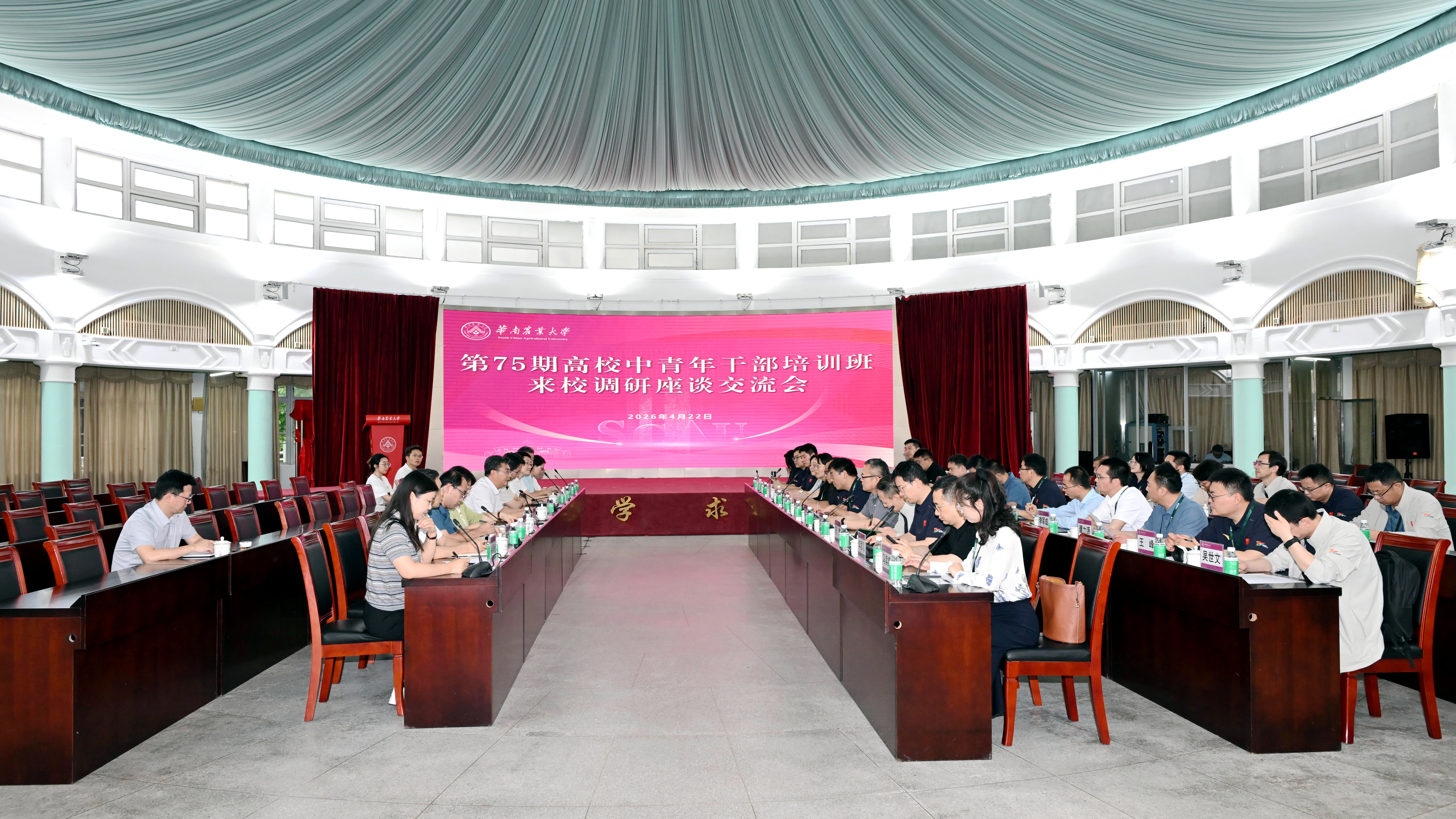 4月22日,国家教育行政学院第75期高校中青年干部培训班一行到访华南农业大学开展专题调研,围绕人才培养、学科建设、成果转化、师资队伍以及数字化转型等工作进行交流。副校长钟强会见了培训班一行。